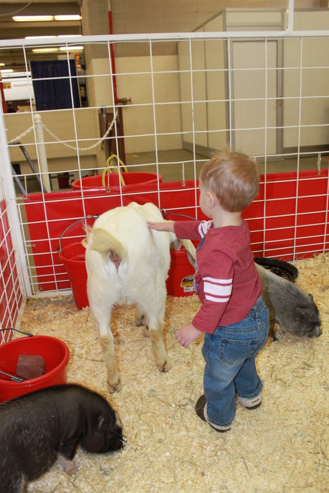 Nick had the PLACE test on Saturday. He took this test so he can get certified to teach elementary education in a regular ed classroom. Since the test was in Denver, we got a hotel room and made sure the hotel had a pool, so that I could keep Cayle occupied while Nick took his test. Nick and I had discussed taking Cayle to the aquarium or children's museum after Nick's test was finished, but then when we arrived in Denver, we were reminded the National Western Stock Show was in town. We knew Cayle would love this event, and we were really excited to take him to see the tractors, and horses, and cows. We knew there was a children's area at the stock show, but we weren't sure what to expect that Cayle would really be able to enjoy. We found a petting zoo, which he loved. Cayle also loved looking at all of the cows and horses. Nick and I were so happy to be able to take our little guy to such a fun event :)